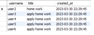 category의 name이 'homework'인 content의 title, created_at 그리고 user의 name을 찾기위한 쿼리를 작성하려고한다.
